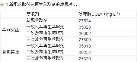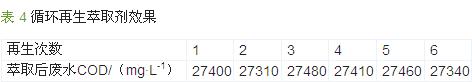 由表 4 可見,萃取劑經6 次反萃再生后,萃取效果沒有明顯變化,說明萃取劑可多次再生循環使用。