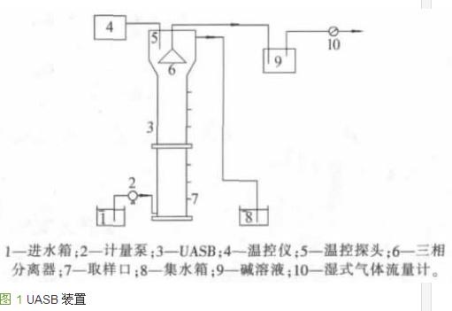 UASB 裝置由有機玻璃制成,有效容積為3 L,高徑比為9,內設氣-液-固三相分離器,見圖 1。