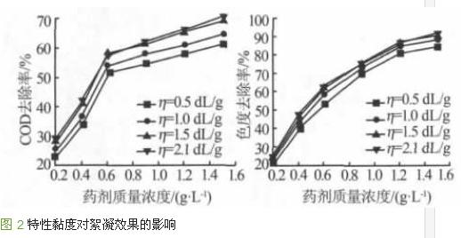 2.2 特性黏度對復合絮凝劑絮凝性能的影響