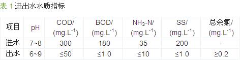 生活污水來自宿舍、食堂、辦公樓和廠區衛生間,根據該廠規模,預計廢水水量約為300 m3/d,設計進水水量按15 m3/h計。根據當地排放標準和中水用途,處理后的水質應滿足《城市污水再生利用 城市雜用水水質》(GB/T 18920—2002)、《黃河流域(陜西段)污水綜合排放標準》(DB 61/224—2011)的要求。進水水質預測和出水指標要求如表 1所示。