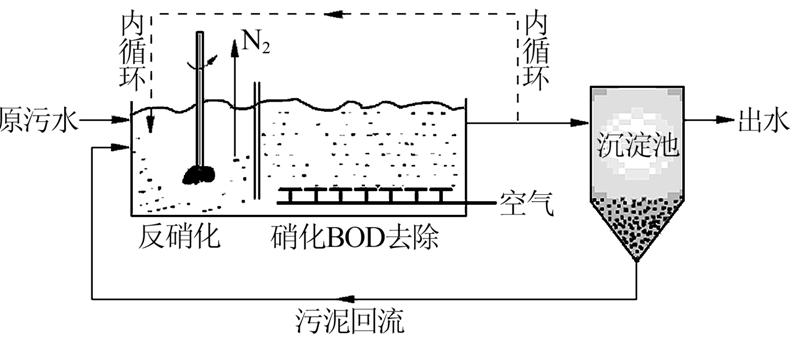 A/O接觸氧化池是一個缺氧反應池和一個好氧反應池組成的聯合系統,如圖 1所示。