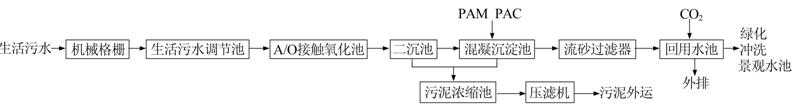 某多晶硅廠緊鄰渭河且所處地區尚未建設地下管網,其生活和生產用水均取自地下水,而生產和生活污水需自建廢水處理系統達標后方可排放。為了節約水資源,該廠對生活污水進行深度處理,達到中水回用標準后回用于景觀水池、綠化、沖廁等。