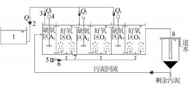 圖 1 分段進水循環A/O工藝裝置示意