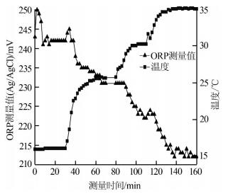 圖 3 ORP靜態(tài)測量值和溫度的關(guān)系