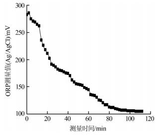 圖 4 通氮除氧過程中ORP靜態(tài)測量值的變化(25 ℃)
