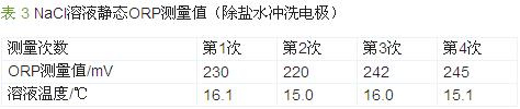 在進(jìn)行ORP靜態(tài)試驗(yàn)時(shí),發(fā)現(xiàn)ORP測量值的重現(xiàn)性并不理想,結(jié)果如表 3所示。