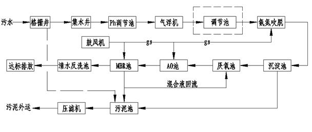 彭軍等選擇厭氧 - 兼氧組合式生物塘作為主體工藝, 將上流式厭氧污泥床移植到兼性塘, 豬場廢水經處理后, 其 BOD 5 、 COD Cr 、 NH 4 + - N 可分別從 9 000 、14 000 、 1 200 降至 20 、 60 、 65 mg · L -1 , 成功地解決了熱帶地區規模化豬場污水污染負荷高和養豬行業利潤低的兩大難題。杭州西子養殖場采用了厭氧好氧結合的處理工藝 , 經處理后 , 水中 COD Cr 約為 400 mg · L -1 ,BOD 5為 140 mg · L -1 , 基本達到廢水排放標準。韓力平等采用直接投加優勢菌的方法, 可大大改善原自然處理系統的能力, 提高對水體或土壤中難降解有機物的降解能力。深圳農牧實業公司的污水處理工程工藝流程為污水 → 固液分離 → 調節池 → 上流式厭氧消化 → 植物塘 → 魚塘 → 排放 , 處理后廢水也能達到深圳市廢水排放標準。 李金秀等采用 ASBR- SBR 組合反應器系統 ,ASBR 作為預處理器 ( 厭氧 ) , 主要用于去除有機物 , SBR ( 好氧 ) 用于生物脫氮處理。膜生物反應器是由膜分離技術與生物反應器相結合的新型生物化學反應系統。 它用膜取代了傳統的二沉池, 具有出水穩定、 活性污泥濃度高、 抗沖擊負荷能力強、 剩余污泥少、 裝置結構緊湊、 占地少等特點。近年來, 已經逐漸應用于各種污水的處理。 范建偉, 張杰采用膜生物反應器對上海市郊一畜禽場的排出廢水進行處理, 通過一段時間的調整, 處理系統逐步穩定, 出水達到國家一級排放標準 。畜禽養殖廢水是比較難處理的有機廢水, 主要是因為其排量大, 溫度較低, 廢水中固液混雜, 有機物含量較高, 固形物體積較小, 很難進行分離, 而且沖洗時間相對集中, 使得處理過程無法連續進行。由于廢水中的 COD , BOD 等指標嚴重超標, 懸浮物量大, 氮磷含量豐富, 氨氮含量高且不易去除, 單純采用物理、 化學或者生物處理方法都很難達到排放要求。 因此一般養殖場的廢水處理都需要使用多種處理方法相結合的工藝。根據畜禽廢水的特點和利用途徑, 可采用以上不同的處理技術。根據污水寶工程經驗典型的工藝流程見下圖:具體參見http://www.xhxdt.com更多相關技術文檔。