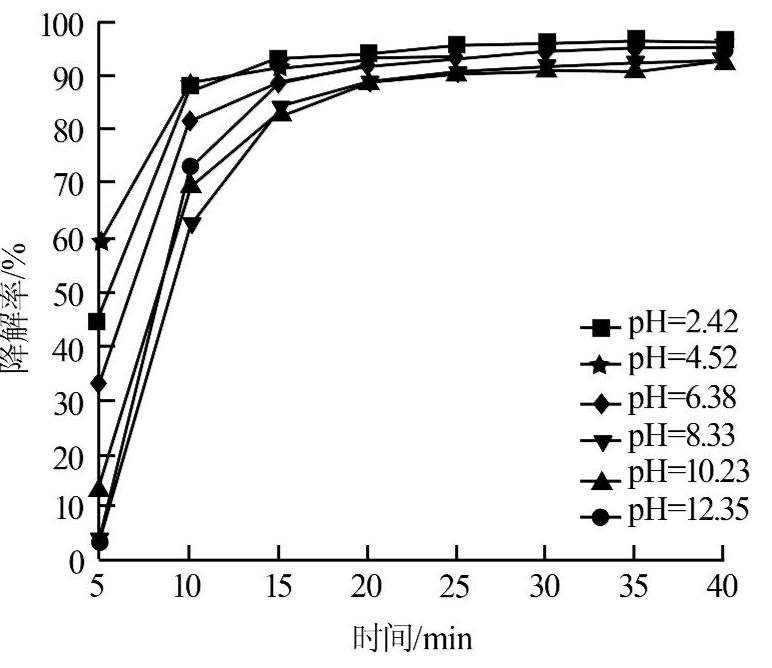 圖2 不同pH對PAP降解的影響