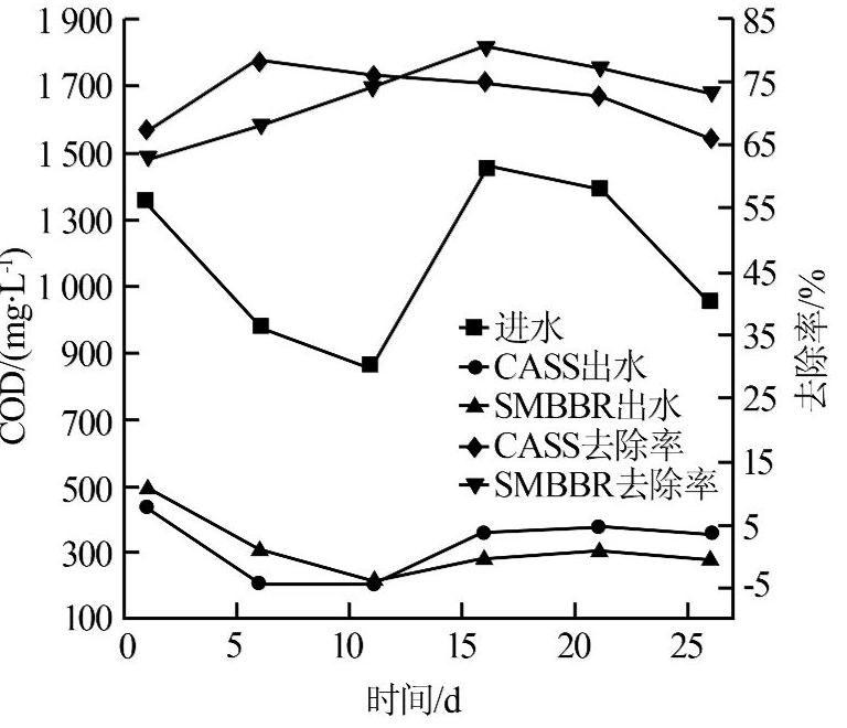 CASS工藝和SMBBR工藝對COD的去除效果對比見圖2。
