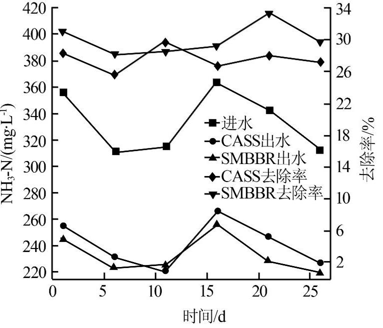 圖3 CASS和SMBBR對NH3-N的去除效果