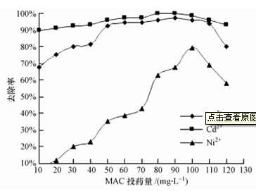 ·MAC 對含Cu2+、Cd2+ 、Ni2+的廢水均能達到較好的處理效果,投加量少,生成絮體時間短,沉降性好,易于固液分離,出水水質好,出水pH值在6.0~8.0之間;