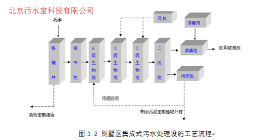 目前針對分散式污水處理點,國內很多地區開始使用集成式污水處理設施對污水進行處理。其主要的工藝流程為: