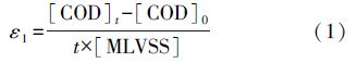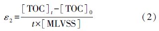 式中,[COD]0、[TOC]0和[COD]t、[TOC]t分別為某一時間段內初始時和終止時的COD和TOC濃度(mg · L-1),t為間隔時間(h),[MLVSS]為揮發性懸浮固體濃度(mg · L-1).