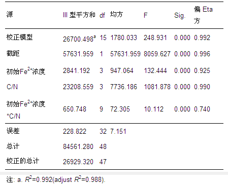 表2 亞鐵離子與碳氮比的主體間效應(yīng)的檢驗(yàn)