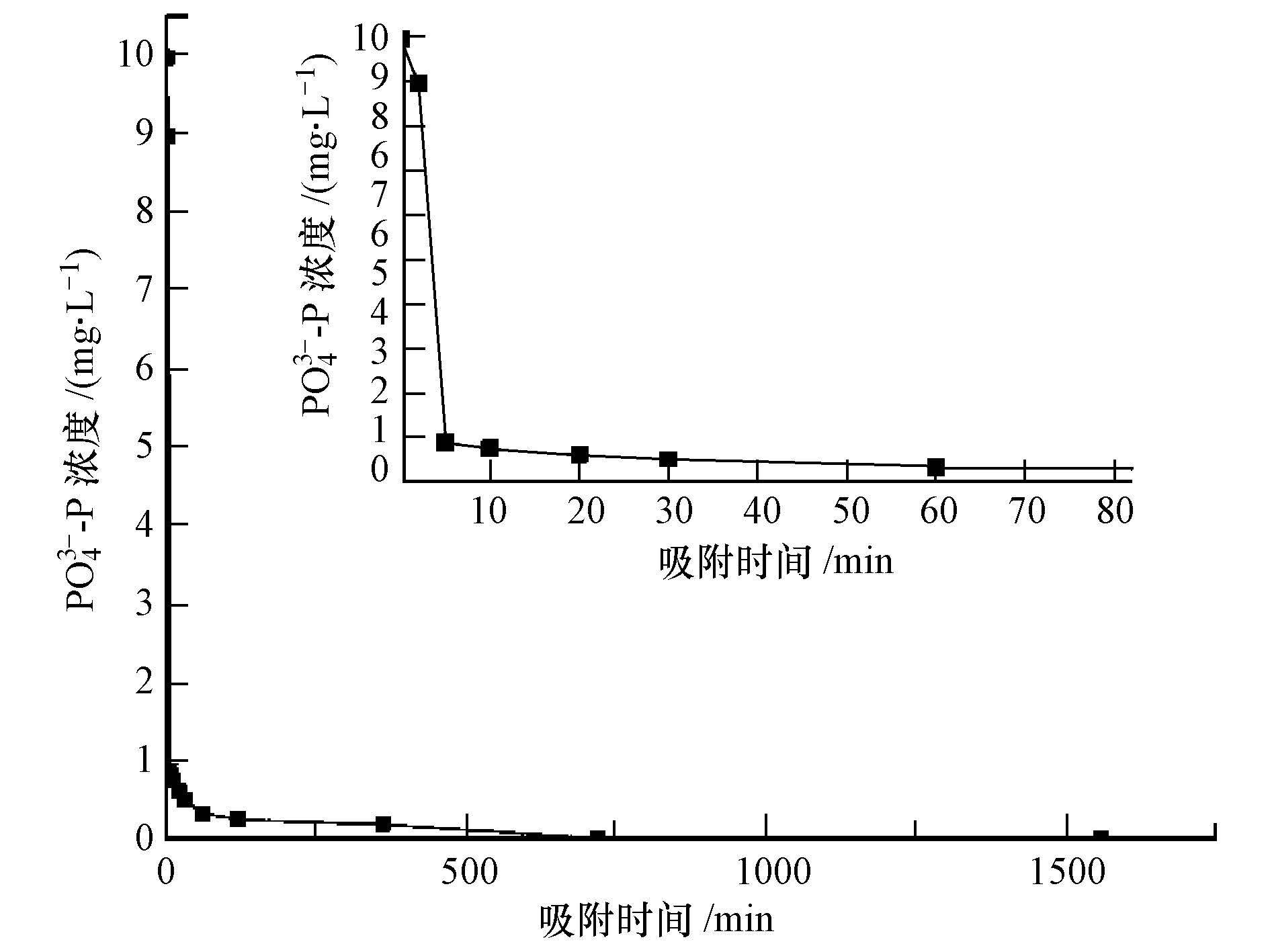 由圖 3可以看出,吸附過程需要的時間很短,約30 min可完成全部吸附的99%以上.為保證吸附效果,使用該稻草秸稈炭進行P吸附時應保證至少10 min的接觸時間(可完成吸附總量的90%).