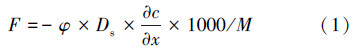 運用Fick第一擴散定律對沉積物-水界面間物質擴散通量進行估算.Fick第一定律適用于穩態擴散,即界面物質的交換過程為平衡狀態,主要受濃度擴散控制(Paul et al., 2001,潘延安等,2014).擴散通量計算公式如下: