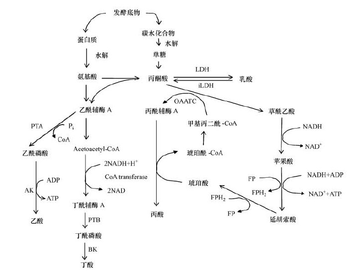 圖 2 底物發酵產酸的代謝途徑
