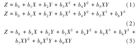 式中,Z為因變量,表示有機酸產量,X和Y為自變量,分別表示C/N比和關鍵酶活性,bi表示函數中的常數.根據實測數據對以上3種多項式模型進行擬合優度的檢驗,結果如表 2所示.