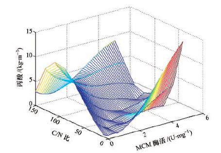 3.4 C/N比-關鍵酶MCM-丙酸曲面關系的數學模型的建立