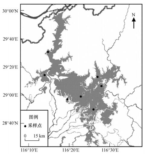 鄱陽湖是我國重要的濕地保護區,位于長江中游,承納贛、撫、信、修、饒五河來水,通過調蓄后經北部湖口流入長江.由于水位變化顯著,造成鄱陽湖區別于其他湖泊的重要特征在于濕地類型復雜多樣.其中,既有季節性淹沒的洲灘濕地和沖積洲濕地,也有河流濕地,還有長期淹沒的低高程湖沼濕地.復雜的濕地類型影響了反硝化過程的諸多控制因子,如周期性的水文變化對沉積物有機質累積、礦化及沉積物氧化還原電位等存在重要影響,進而對反硝化造成影響.而水位的巨大變幅更影響了鄱陽湖不同濕地區域與流域河道的連通性,從而造成反硝化底物供給的差異.