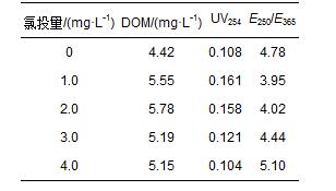表2 預(yù)氯化對DOM濃度及紫外性質(zhì)的影響