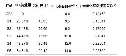 1)隨TiO2負(fù)載量的增加,粘附在粉煤灰上的TiO2量逐漸增多,TiO2/CFA中TiO2的晶粒尺寸逐漸增大,TiO2/CFA中形成的多孔結(jié)構(gòu)增多、比表面積增大.