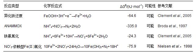 Clement等(2005)研究發(fā)現(xiàn),在無(wú)亞硝酸鹽存在的前提下,F(xiàn)e(Ⅲ)的存在能夠?qū)е鲁练e物和土壤中厭氧氨氧化(ANAMMOX)現(xiàn)象的發(fā)生,可能是由于Fe3+/Fe2+的標(biāo)準(zhǔn)氧化還原電位為770 mV,而氧則為816 mV,兩者電化學(xué)性能相近,若體系中所含的細(xì)菌具有合適的酶系統(tǒng)(如Geobacter sulfurreducen和Aeromonas hydrophila在缺氧條件下能夠利用Fe(Ⅲ)作為電子受體(Bond et al., 2003; Pham et al., 2003)),則Fe(Ⅲ)能夠代替氧作為電子受體接受電子.與此同時(shí),已有研究發(fā)現(xiàn)厭氧環(huán)境下NO-3和NO-2的生物還原伴隨著Fe(Ⅱ)的氧化,即NO-3-依賴型Fe(Ⅱ)氧化(Ratering et al., 2002).因此,活性污泥鐵還原條件下的脫氮原因可能是綜上所述多種生物還原復(fù)合作用的結(jié)果.