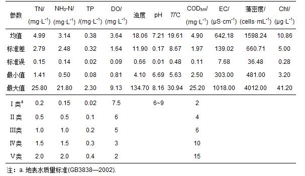 表1 水質(zhì)指標(biāo)的統(tǒng)計描述及環(huán)境標(biāo)準(zhǔn)