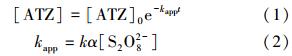 反應體積為50 mL,ATZ初始濃度為50 μmol · L-1.用H2SO4或NaOH調節溶液pH,置于恒溫水浴鍋中,加入K2S2O8,并開始計時.每隔20 min,取0.5 mL的樣品立即和0.5 mL的100 mmol · L-1 Na2S2O3混合,終止反應,用HPLC分析樣品中ATZ的殘留.