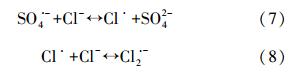 CO2-3的存在也顯著抑制了ATZ的降解,且抑制程度隨著CO2-3的濃度的增加而增強(圖 6b).當含有100 mmol · L-1 CO2-3 時,2 h后ATZ去除率只有40%,而沒有CO2-3但其它條件相同時,ATZ已經完全去除.這可能是因為CO2-3會與SO· -4反應生成CO2-3(式(7)),而CO2-3的氧化能力很弱,所以會使ATZ去除率顯著降低.