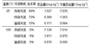 表2 不同含水率污泥中的汞含量