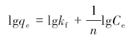 式中,Ce為吸附平衡時(shí)的濃度(mg · L-1);qe為吸附平衡時(shí)的吸附量(mg · g-1);qm為飽和吸附量(mg · g-1);kL為吸附平衡常數(shù)(L · mg-1).