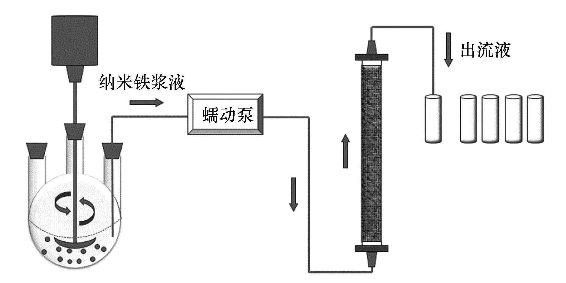 納米鐵漿液由蠕動泵遷移至玻璃柱下方進水口,從上方出水口遷移出,并收集出水樣液.