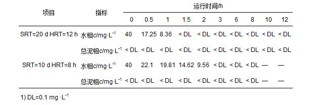 表 3 兩工況條件穩(wěn)定階段40 mg ·L-1BPA組污泥單周期內(nèi)水相和泥相BPA濃度變化 1)