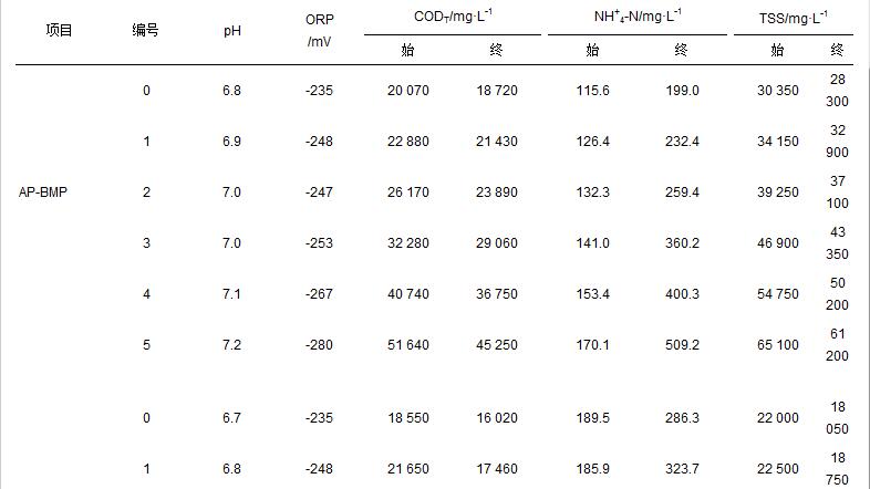 (2)BMP實驗結束后,TSS、 CODT有所下降,NH+4-N顯著提高,且高污泥負荷F/M條件下水質變化趨勢更為顯著.與AP-BMP實驗相比,DH-BMP水質變化顯著.