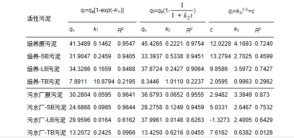 3.2 污泥吸附動力學(xué)模型分析