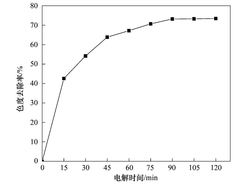 圖 4 電解時間對體系色度去除效果的影響