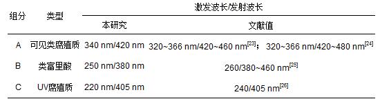 表 4 水樣熒光組分特征