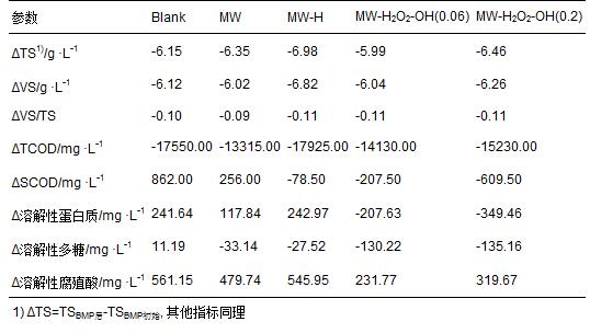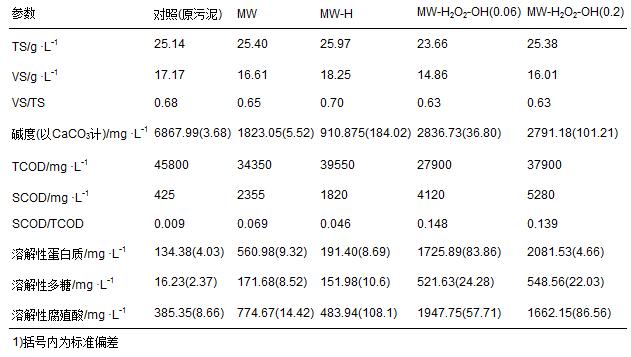 表 2 污泥微波預(yù)處理前后的主要理化特征 1)