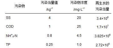 表 2 2010年北京再生水的污染當量