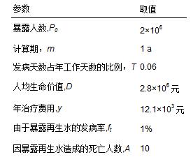 表 4 評價2010年北京再生水利用對健康影響的參數