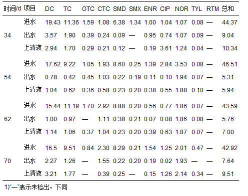 表 3 MBR處理前后養豬廢水中抗生素濃度變化
