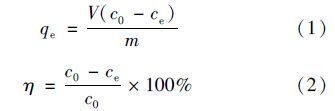 式中,c0和ce分別為廢水中對硝基苯酚的初始濃度和吸附平衡時的濃度,mg ·L-1; m為改性沸石投加量,g; V為廢水樣容積,L.