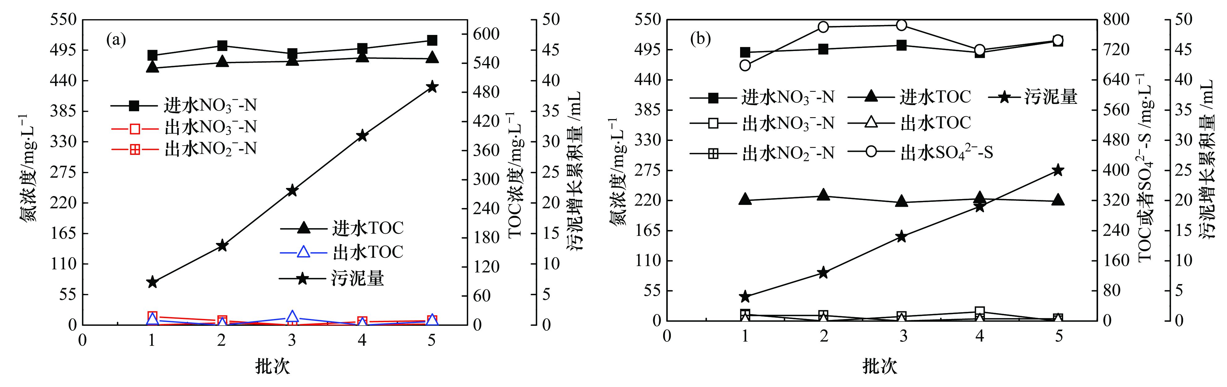 (4) 協同反硝化處理高濃度NO3-廢水,會存在NO2--N中間產物的積累和SO42-產量高的問題,需要進行深度處理.