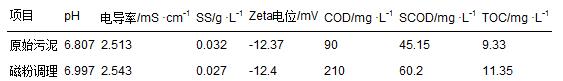 表 2 磁粉調理對污泥上清液基本性質的影響