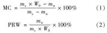 采用質量法進行污泥含水率和脫水率的分析測定[21]; 脫水過程中,污泥的含水率(MC)及脫水率(PRW)分別按公式(1)和公式(2)計算.