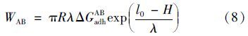 式中,λ為溶液中分子間關聯長度 (≈0.6×10adh-9 m),ΔGAB為路易斯酸堿接觸能.