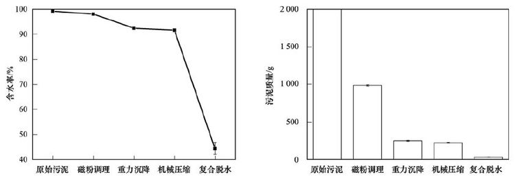 圖 9 MPEOD工藝污泥含水率變化及污泥減量效果