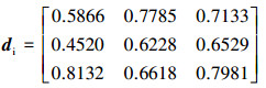 根據(jù)式(6)計(jì)算得到3位專(zhuān)家決策各方案的相對(duì)貼近度矩陣(行向量代表專(zhuān)家,列向量代表備選方案):