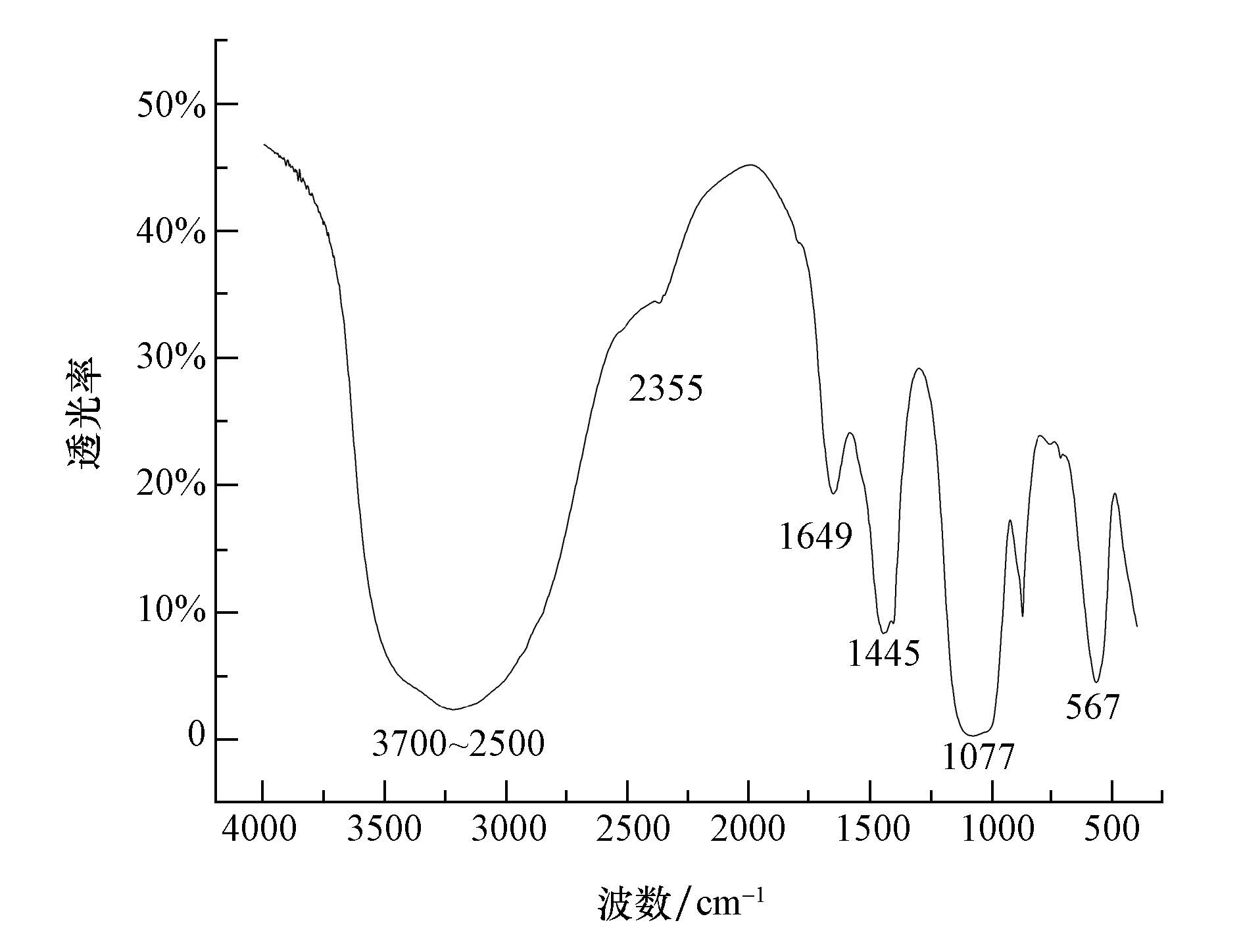 圖 2磷回收產(chǎn)物的傅里葉紅外光譜分析